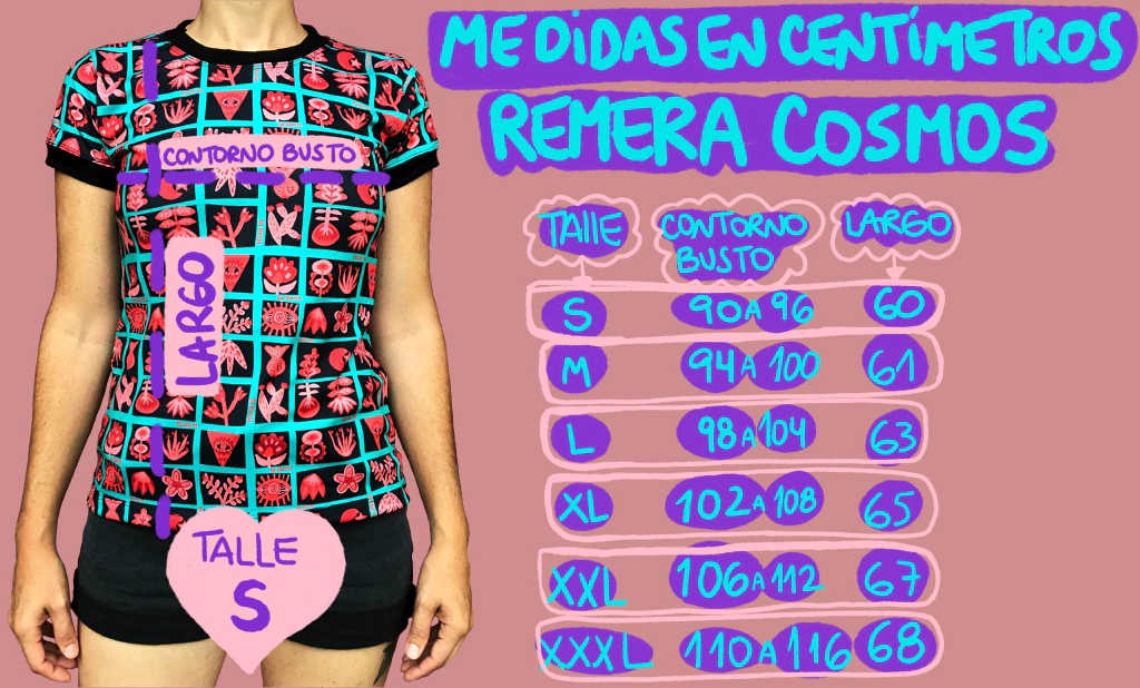 SON REMERAS DE UN MODAL MUY SUAVE TIPO ATERCIOPELADO, LOS ESTAMPADOS SON PROPIOS. EL CUELLO ES BASTANTE CERRADO , QUEDAN BIEN CON TODO! JEANS , JOGGING , FALDAS ETC. VIENEN EN 6 TALLES, EL MODELO ES AL CUERPO , PERO SE USA COMO A CADA UNE LE GUSTE. SON TODAS ESTAMPADAS, ADELANTE Y ATRÁS. MIREN LAS MEDIDAS EN LA TABLA Y SI HAY DUDAS ME ESCRIBEN POR MAIL O WASAP. EL MODAL ES UNA TELA DE PUNTO POR LO QUE SE ESTIRAN, NO SON PARA NADA RIGIDAS. CUANDO PONGO QUE TIENE 90 DE CONTORNO ES SIN ESTIRAR Y 96 ES ESTIRADO.