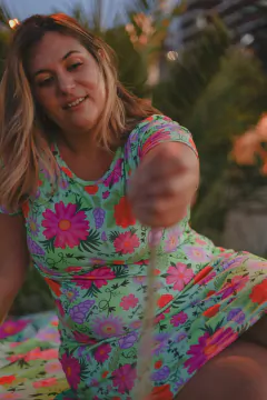 EL VESTIDO PRIMAVERA ES SIMPLE Y HERMOSO. ES DE MODAL ESTAMPADO CON DISEÑOS PROPIOS, LA TELA ES MUY SUAVE, NO ACHICA Y TIENE REBOTE. TANTO LA DELANTERA COMO LA ESPALDA SON ESTAMPADAS.